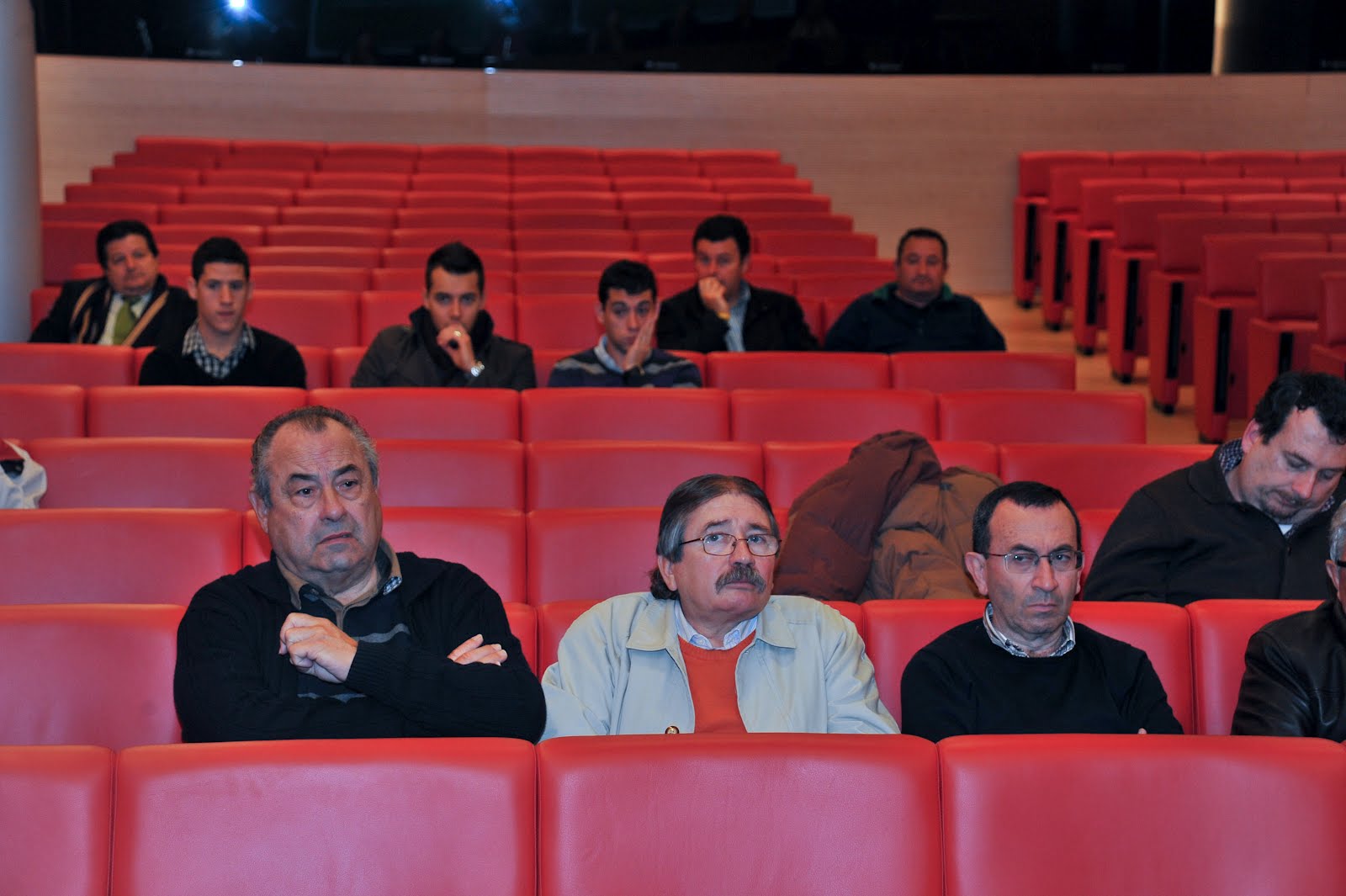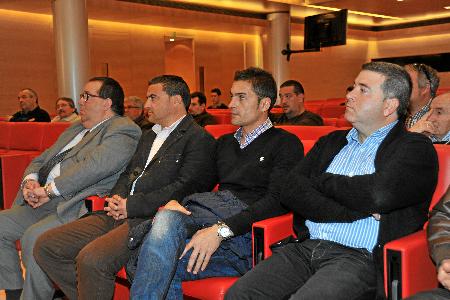 Entrenadores y representes de clubes. Placido Martinez en representación de La mojonera CF, sentado a la izquierda de Francisco, entrenador de la UD Almería B [M.A. Cruz / La Voz de Almería]